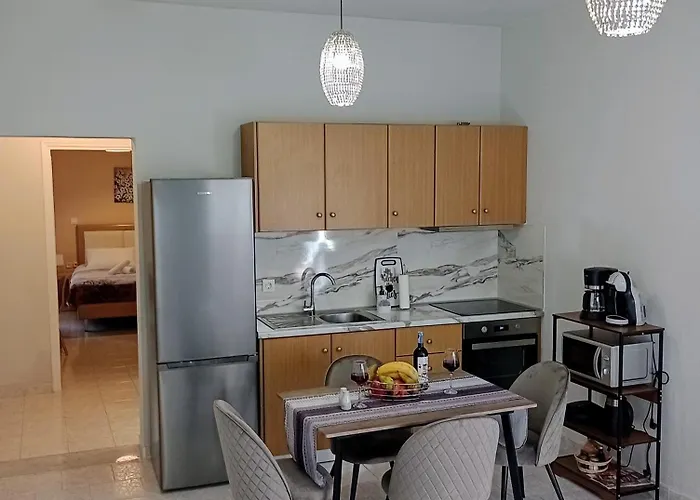 Cozy Kremasti Apartment comprises a patio, a balcony, and a dressing area and features views of the inner courtyard. To ensure your comfort, a walk-in shower and a separate toilet are provided at the accommodation. Moreover, there are a hairdryer and bath sheets as well.